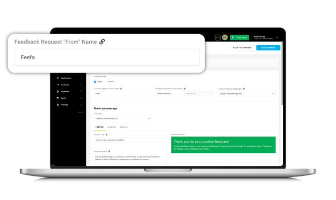 Customise the sender name for your feedback request emails to reflect your branding, this is set to Feefo by default.