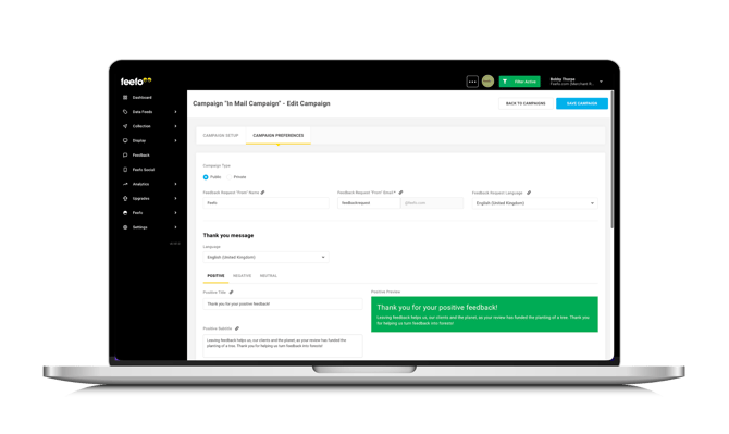 Welcome to the knowledge base article on the powerful 'Collection' section of the Feefo Hub. This section empowers you to customise and manage entire feedback campaigns, including settings for thank you messages and the visibility of your reviews. By making use of these features, you can tailor your campaigns to match your brand and engage effectively with your customers. This article will walk you through the various options available within the 'Campaign Preferences' tab, guiding you on how to make the most out of this valuable tool.