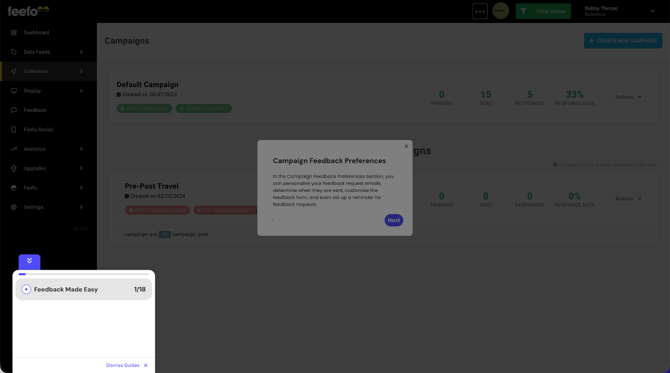 - Click the ‘Feedback Preferences’ button alongside your default campaign.