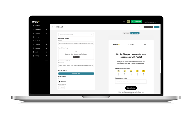 Feefo’s In Mail feature allows your customers to leave star ratings and written feedback directly within their email inbox, without needing to open a web browser. This streamlined approach increases response rates and makes feedback collection quicker and more convenient.