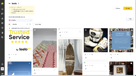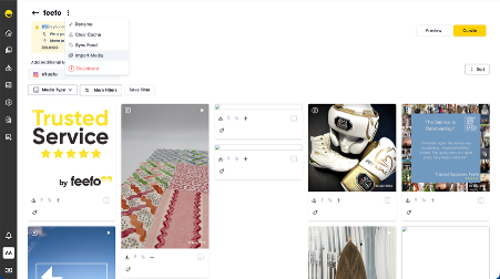 - A top bar with options like Sync Feed, Import Media, Clear Cache, Preview, Curate