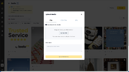 - Drag and drop your images/videos into the upload area, or click Upload a file and select them from your device.