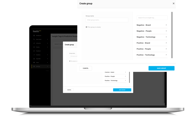 - From here you’ll need to name the group and select the insight labels you want to add into it from the list on the right hand side. Don’t forget to save the group!