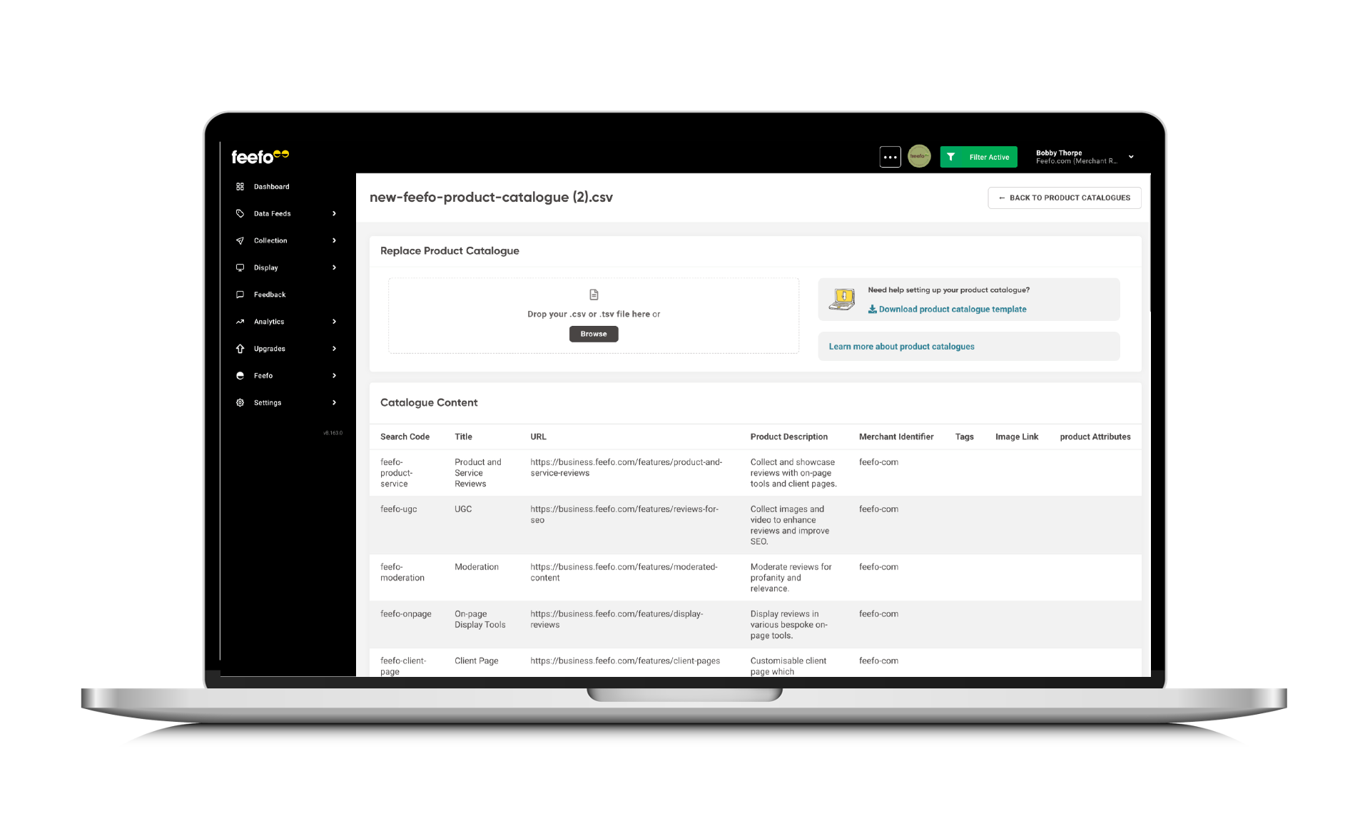 Once the product catalogue is complete it’s time to upload it to the Feefo Hub