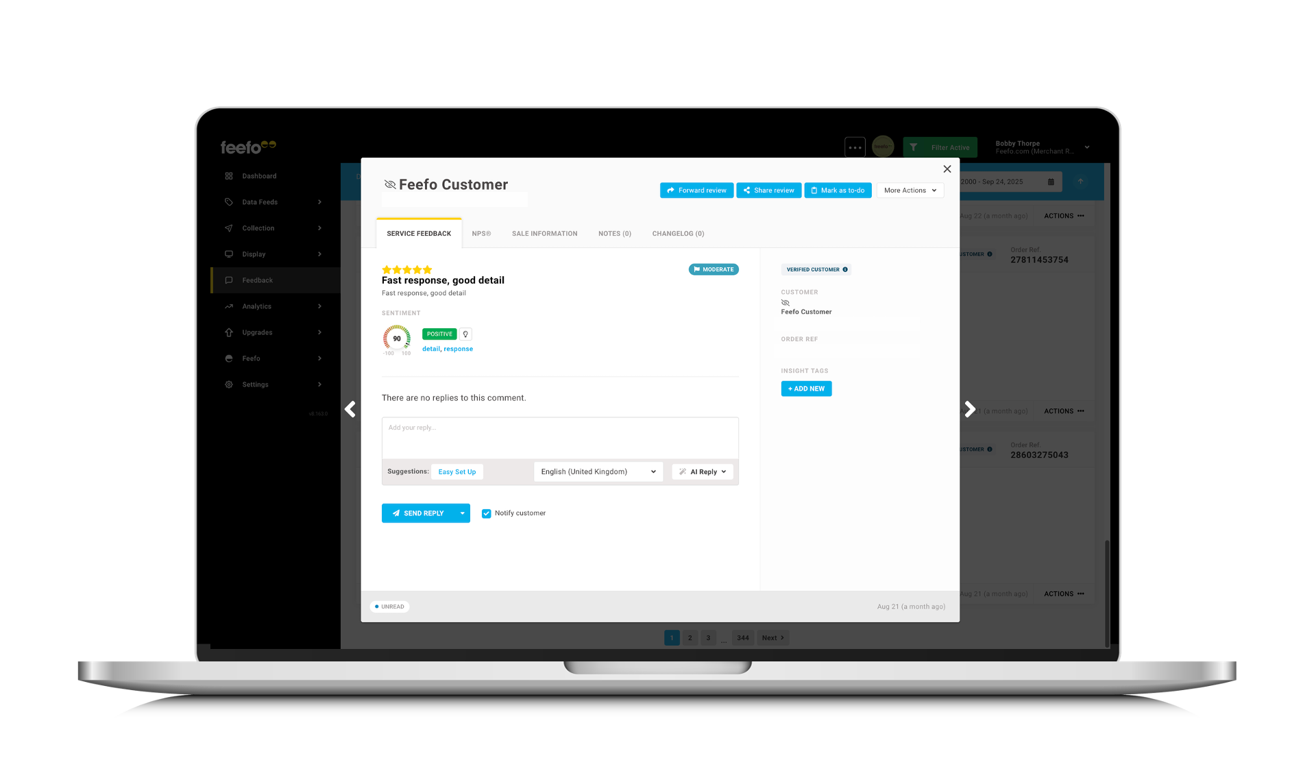- Add Insight Tags: Categorise feedback for reporting and analysis.