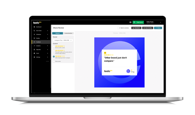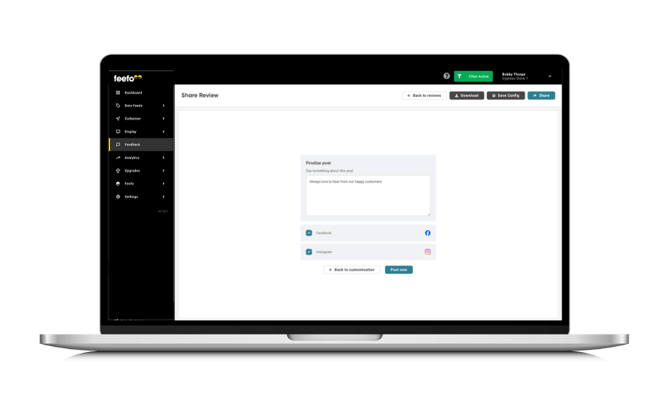 - Easily curate and share posts directly from the Feefo Hub platform, saving time and effort.