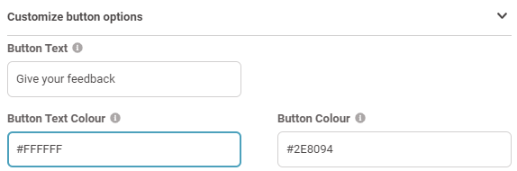 You can also customise button text, button text colour, and button colour by entering a Hex colour code in the 'Customise button option' section.