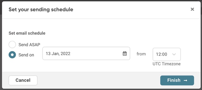 - Set a schedule for emails to be sent or publish them instantly.