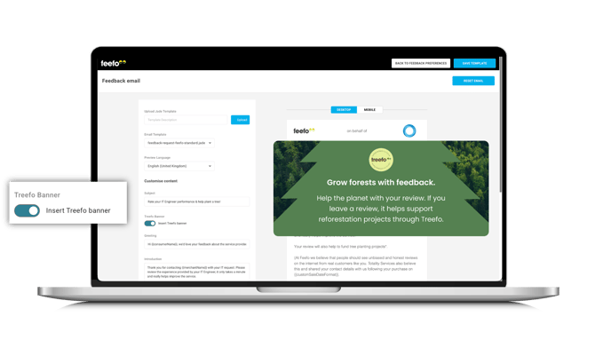 - Collect More Feedback: Treefo provides customers with a powerful motivation to leave a review - the chance to do good for the planet. This positive incentive helps boost your overall response rate.